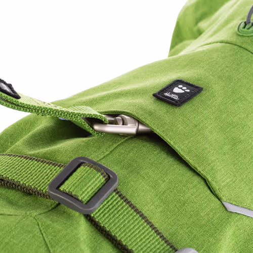 A fényvisszaverő szegély és a 3M minták növelik a láthatóságot éjszaka és rossz időben. A hátoldalon található cipzáras lyuk lehetővé teszi a póráz rögzítését a kabát alatt viselt hámhoz (a 23-23-as méretekben integrált hám található). A kabát belsejében található, címkével és kontrasztos cérnával jelölt szerviznyílás megkönnyíti az esetleges szakadások javítását.
